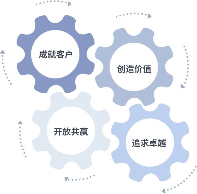 成就客户是一切决策的出发点,,,,创造价值是衡量所有工作的标准,,,追求卓越是bsports必一做事做人的态度,,,,开放共赢是bsports必一的格局也是最终的结果。。。。价值观的齿轮环环相扣,,推动着组织里的每个人不断向前。。